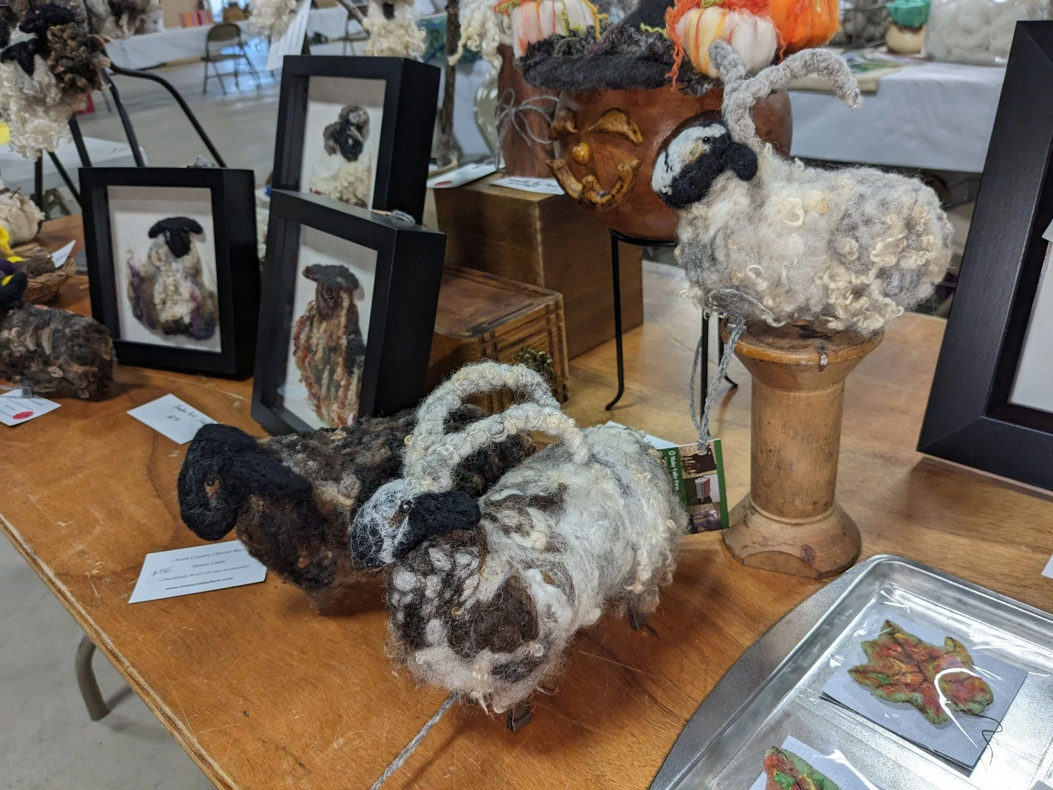 Fiber art including needle felting and wet felting items made on the farm using our North Country Cheviot wool. Items include wool paintings and sculptures.